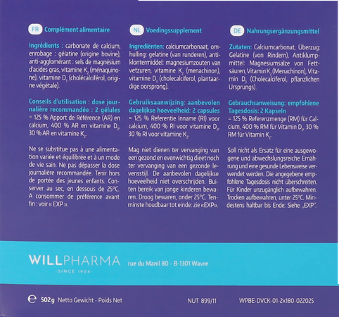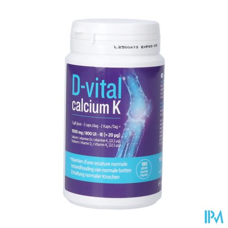 D-vital Calcium K Caps 2x180 Promo is een voedingssupplement, verkrijgbaar in uw buurtapotheek of online apotheek. Neem niet meer dan de aanbevolen dagelijkse dosis vermeld op de verpakking. Het vervangt geen gezonde levensstijl en gevarieerde en evenwichtige voeding. Vraag raad aan uw apotheker. Het product altijd buiten het bereik van kinderen houden.