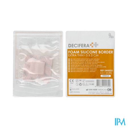 Decifera Foam Silicone Border Extra Thin is een niet verklevend, absorberend schuimverband met een siliconen wondcontactlaag en PU film op de achterzijde. De Foam Silicone Border Extra Thin draagt bij aan een vochtig wondmilieu en bevordert zo een optimaal wondgenezingsproces. Het heeft als functie; absorptie, reiniging en bescherming. Overtollig wondexsudaat wordt opgenomen in de kern van de polyurethaan schuimlaag. Door deze absorptie ontstaat er ook een reinigend effect. De geïntegreerde siliconen laag, biedt bescherming door voorkoming van verkleving van de wond aan het wondverband. Nieuw gevormd weefsel wordt zo beschermd en de patiënt ervaart geen pijn bij het verwisselen van het verband.