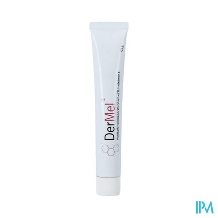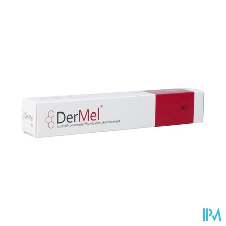 DerMel® huidzalf is een verzachtende zalf voor bescherming en herstel van de geïrriteerde, droge en/of gevoelige huid zoals bijvoorbeeld bij eczeem. DerMel® huidzalf kan ook worden toegepast voor de behandeling van oppervlakkige en geïnfecteerde wondjes, bijvoorbeeld door krabben bij eczeem. DerMel® huidzalf bestaat uit een huidverzorgende zalf in combinatie met zuivere, enzymrijke honing. Door de specifieke samenstelling (o.a. lage pH) wordt de natuurlijke afweer van de huid versterkt. Op de huid bewerkstelligt DerMel® huidzalf een licht koelend effect en geeft daardoor verlichting bij jeuk.
