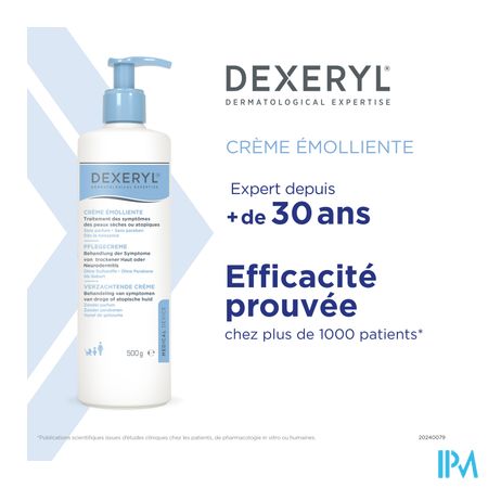 Dexeryl verzachtende crème is een medisch hulpmiddel dat de huid voorziet van al het nodige. Dexeryl crème heeft een bewezen doeltreffendheid voor de behandeling van huidklachten veroorzaakt door de droge huid met neiging tot atopie. Geschikt voor het hele gezin. Vanaf de geboorte.