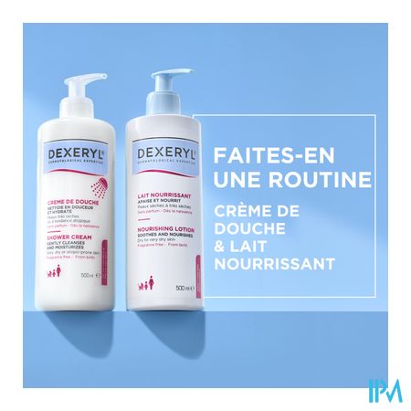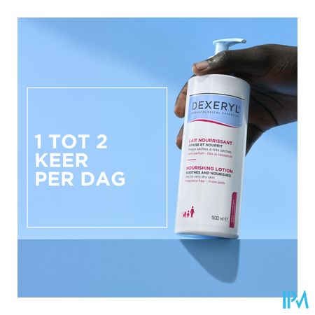 DEXERYL Voedende Lotion is speciaal ontwikkeld voor de vochtarme, gevoelige, droge of zeer droge huid en biedt een vloeibare en lichte textuur. Deze "EMOLLIENT PLUS"-verzorging is onmiddellijk doeltreffend en 95% van de gebruikers merkt al bij het eerste gebruik dat de huid minder trekkerig aanvoelt. Deze lotion hydrateert en voedt je huid diepgaand. Hij biedt 24 uur lang intense voeding en verbetert het vermogen van de opperhuid om water vast te houden en lipiden aan te maken. Verrijkt met glycyrrhetinezuur, kalmeert het de huid onmiddellijk. De lichtgewicht formule wordt snel geabsorbeerd, waardoor het product snel kan worden aangebracht en tegelijkertijd flexibel en comfortabel is, ideaal voor gebruik op het hele lichaam, inclusief gezicht en handen. Deze lotion is geschikt voor dagelijks gebruik het hele jaar door of in geval van een tijdelijke of seizoensgebonden droge huid. Het kan gebruikt worden in combinatie met make-up. De pompfles van 500 ml garandeert eenvoudig en praktisch gebruik voor het hele gezin, inclusief baby's. De lotion voldoet aan de eisen van de gevoelige huid en is getest onder dermatologisch toezicht. De formule is parfumvrij, hypoallergeen en niet-comedogeen en biedt een aangename en doeltreffende verzorging. Gun je huid het beste met DEXERYL Voedende Lotion. Kortom, kies voor intense hydratatie, langdurige voeding en een vloeibare, lichte textuur. Voor een complete verzorgingsroutine voor de droge huid, combineer je het met DEXERYL Douchecrème of DEXERYL Wasolie.