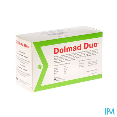 Dolmad Duo Tabl 60 is een voedingssupplement, verkrijgbaar in uw buurtapotheek of online apotheek. Neem niet meer dan de aanbevolen dagelijkse dosis vermeld op de verpakking. Het vervangt geen gezonde levensstijl en gevarieerde en evenwichtige voeding. Vraag raad aan uw apotheker. Het product altijd buiten het bereik van kinderen houden.
