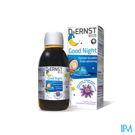 Dr Ernst Kids Good Night syrup 150 M is een voedingssupplement, verkrijgbaar in uw buurtapotheek of online apotheek. Neem niet meer dan de aanbevolen dagelijkse dosis vermeld op de verpakking. Het vervangt geen gezonde levensstijl en gevarieerde en evenwichtige voeding. Vraag raad aan uw apotheker. Het product altijd buiten het bereik van kinderen houden.