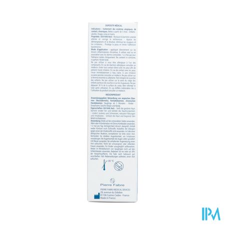 Voorzorgsmaatregelen bij gebruik : - Niet gebruiken als u allergisch bent voor één van de bestanddelen - Raadpleeg een arts bij een allergische reactie - Vermijd contact met de ogen om irritatie te voorkomen - Bij contact met de ogen onmiddellijk uitspoelen met proper water - Raadpleeg een arts als de oogirritatie aanhoudt. - Niet gebruiken tijdens zwangerschap of borstvoeding. - Buiten bereik van kinderen houden - Niet gebruiken op de luierstreek van zuigelingen of op slijmvliezen. - Niet meer dan 30% van het lichaamsoppervlak gebruiken - Sluit de tube zorgvuldig na gebruik - Raadpleeg een arts als u bijwerkingen ondervindt als gevolg van het gebruik van het product. -Reacties op de plaats van aanbrengen (branderig gevoel, prikken, erytheem, jeuk, droogheid...) zijn te verwachten bij personen met eczeem omdat deze personen een veranderde huidbarrière hebben. Het is mogelijk om een tijdelijke verergering van eczeem waar te nemen. -Raadpleeg een arts als er binnen 8 tot 10 dagen geen verbetering optreedt of als de eczeemsymptomen verergeren. -In geval van twijfel en/of bijwerkingen die verband houden met het gebruik van dit product, een arts raadplegen. -Als u reden hebt om aan te nemen dat er zich een ernstig incident heeft voorgedaan in verband met het gebruik van dit product, meld dit dan bij uw nationale overheden of bij de fabrikant.