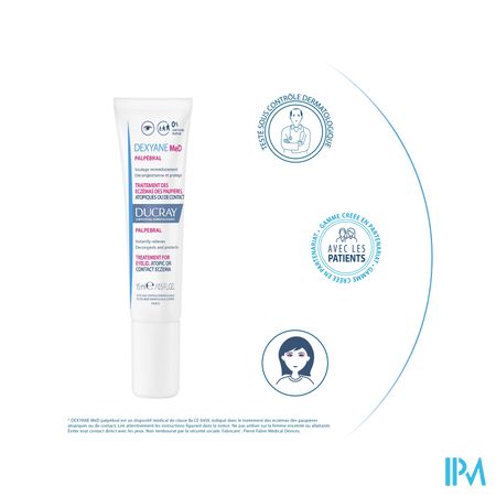 *DEXYANE MED Palpebral is een medisch hulpmiddel, een gereguleerd gezondheidsproduct dat, in overeenstemming met deze verordening, het CE-merkteken draagt. Lees zorgvuldig de bijgeleverde bijsluiter. Niet gebruiken tijdens zwangerschap of borstvoeding. Vermijd direct contact met de ogen. Leeftijd vanaf 3 maanden. Fabrikant : Pierre Fabre Medicament.