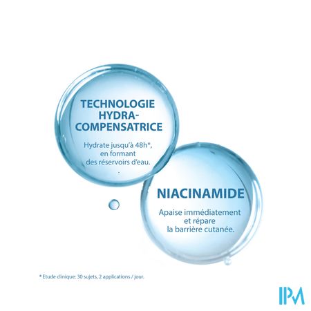 De compenserende crème die de huid vanaf het eerste uur* herstelt en meteen hydrateert en kalmeert** bij een huid die beschadigd is door uitdrogende behandelingen voor ernstige acne, dankzij: - De hydracompenserende technologie voor tot wel 48 uur hydratatie***, door de vorming van waterreservoirs. - Niacinamide om irritatie en roodheid onmiddellijk te kalmeren, droogheid te voorkomen en de huidbarrière te versterken. De huid is onmiddellijk comfortabel, gekalmeerd en langdurig gehydrateerd.