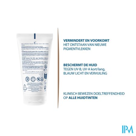 • De 1e fluide tegen vlekjes voor dagelijks gebruik met een zeer hoge beschermingsfactor die pigmentvlekken voorkomt en vervaagt, en tegelijkertijd de huid beschermt tegen uv-B-stralen, korte en lange uv-A-stralen, blauw licht en de schadelijke effecten van vervuiling • Deze innovatieve verzorging is perfect aangepast aan de normale tot gemengde huid en biedt een bewezen dubbele doeltreffendheid tegen bruine vlekjes en tekenen van veroudering veroorzaakt door blootstelling aan de zon • Deze geurloze fluide heeft een luchtige textuur die droog aanvoelt. De formule combineert een hydraterende werking met een onzichtbare finish en dat bij elke huidskleur • Uitstekende make-upbasis voor dagelijks gebruik die bestand is tegen water en zweet • Hoge tolerantie: formule geschikt voor zwangere vrouwen of vrouwen die borstvoeding geven
