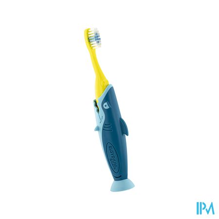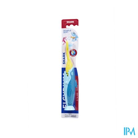 De ELGYDIUM Kids-haaientandenborstel voor 2 tot 6 jaar is speciaal ontworpen voor kleine kaakjes. De slipvaste, ergonomische steel ligt goed in de hand, zelfs als hij nat is. De zachte, fijn afgeronde borstelharen van hoogwaardig nylon zijn zacht voor babytandjes en tandvlees en maken dagelijks poetsen aangenaam en zacht. De holle borstelharen passen perfect in de vorm van melktanden, voor een volledige reiniging van het tandoppervlak. De gekleurde borstelharen in het midden zijn daar aangebracht om de kinderen te helpen de tandpasta correct af te meten, zodat ze niet te veel gebruiken. De zuignap aan het uiteinde houdt hem rechtop.