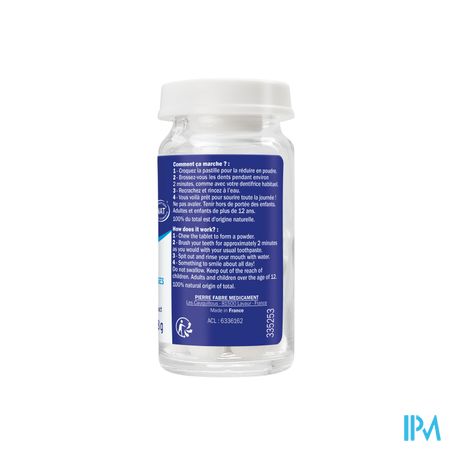 1- Kauw de tablet tot poeder. 2- Poets je tanden gedurende ongeveer 2 minuten, zoals je gewend bent met je gewone tandpasta. 3- Spuw uit en spoel je mond met water. 4- Je bent nu klaar om de hele dag te glimlachen!
