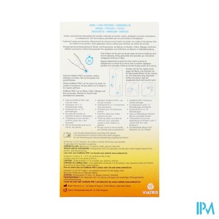 - EndWarts PEN C kan door meerdere personen worden gebruikt. Voordat iemand anders EndWarts Pen C na u gaat gebruiken, plaatst u de dop terug, houdt u de pen gedurende minstens 5 minuten met de punt recht naar beneden, zodat de punt van de pen in contact blijft met de oplossing. Dit voorkomt besmetting van uw wratten naar de andere persoon.