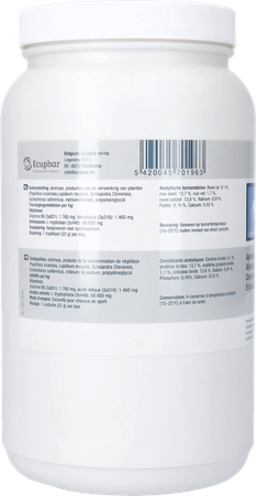 Dit poedersupplement van Equi is speciaal samengesteld voor paarden die korte perioden van spanning doormaken, zoals bij wedstrijden of tijdens transport. Het supplement geeft ondersteuning tijdens deze spanningsmomenten. Bovendien kan het product uw paard helpen om beter om te gaan met prikkels. Equi-Stress bestaat uit een combinatie van kruiden met een rustgevende werking. Ook bevat het L-tryptofaan, een essentieel aminozuur dat paarden zelf niet aan kunnen maken.