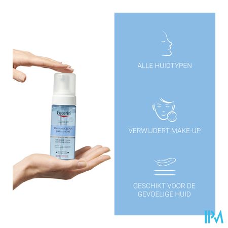 Micellair Schuim is een milde, maar effectieve gezichtsreiniger. Het verwijdert mild, maar grondig onzuiverheden, make-up en overtollige talg in één stap zonder de huid uit te drogen. Daarnaast is ook bewezen dat het zonnebescherming voor het gezicht met een zeer hoge beschermingsfactor verwijdert.¹ Onze schuimreiniger is het eerste micellaire schuim met een combinatie van een extra mild reinigingscomplex en Hyaluronzuur en andere hydraterende ingrediënten afkomstig uit de natuur om de huid te helpen haar natuurlijke vochtbalans te behouden. De huid voelt schoon, gehydrateerd, zacht, gematteerd en verfrist aan. Eucerin DermatoCLEAN [HYALURON] Micellair Schuim is geschikt voor alle huidtypen en klinisch en dermatologisch bewezen geschikt te zijn voor de gevoelige huid.