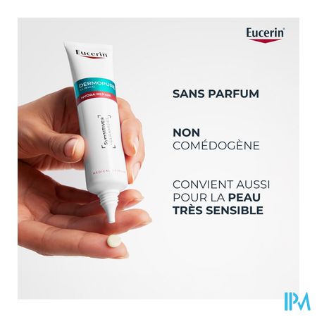 Eucerin DERMOPURE CLINICAL Hydra Repair is klinisch en dermatologisch getest. De crème ondersteunt het herstel van de huidbarrière tijdens het gebruik van uitdrogende medische behandelingen tegen acne. Met Symsitive™ en Ceramiden om onmiddellijk een tintelend, branderig en jeukerig gevoel te verminderen.