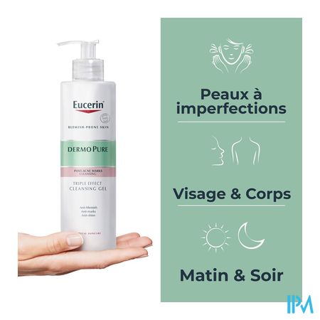 Eucerin DermoPure Triple Action Reinigingsgel met 2% Salicylzuur helpt u eindelijk onzuiverheden en post-acne vlekken tegen te gaan met 3 belangrijke factoren: