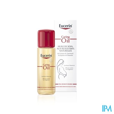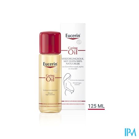 Eucerin Verzorgende Olie is speciaal ontwikkeld voor de behoeften van de gevoelige huid, zelfs tijdens de zwangerschap. Het bevat vitamine E en van hoge kwaliteit, pure plantaardige oliën die rijk zijn aan linolzuur, een onverzadigd vetzuur dat de huid de natuurlijke huidbarrièrefunctie versterkt. De olie is gemakkelijk te verspreiden en wordt snel opgenomen. Het toepassen met regelmatige massage zal de bloedsomloop en de elasticiteit van de huid verbeteren en de zichtbaarheid van striemen verminderen