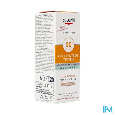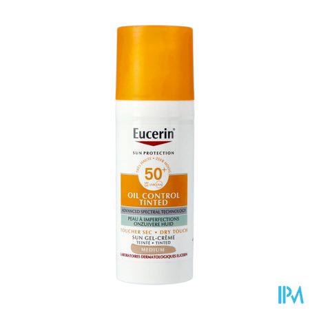 Eucerin Oil Control Tinted Sun Gel-Crème SPF 50+ is een getinte zonnebescherming voor het gezicht voor de vette en acnegevoelige huid. De Advanced Spectral Technology combineert breedband- en fotostabiele UVA- en UVB-filters voor een zeer hoge UV-bescherming met Licochalcone A, dat inwerkt op vrije radicalen gegenereerd door UV en hoog energetisch zichtbaar licht, en Glycyrrhetinezuur dat het eigen DNA-herstelmechanisme van de huid ondersteunt.