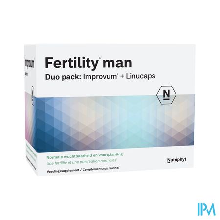 Fertility man is een duo pack met fytonutriënten (Improvum) + hoogwaardige omega vetzuren (Linucaps) voor de man. Zonder enige toevoeging van hormonen of medicijnen.