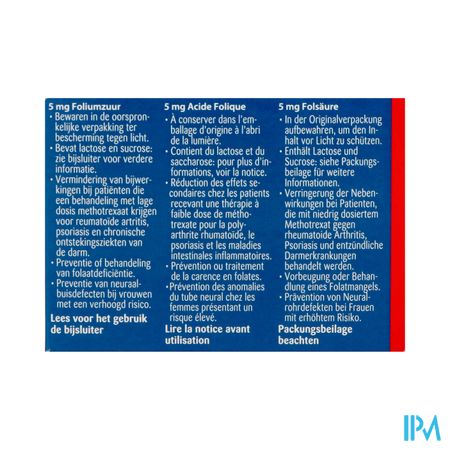 • Preventie van neuraalbuisdefecten bij vrouwen met een hoog risico: 5 mg per dag, op te starten ten minste 1 maand voor de conceptie en verder te zetten tijdens het eerste trimester van de zwangerschap.