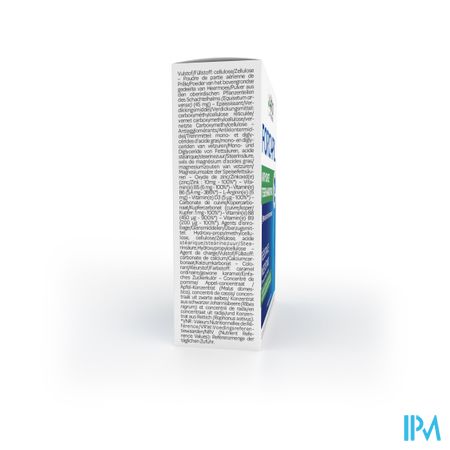 • Glansmiddelen: hydroxylpropylmethylcellulose, cellulose, stearinezuur, hydroxypropylcellulose - Vulstof: calciumcarbonaat - Kleurstof: gewone karamel - Concentraten van appel (Malus domestica Borkh.), zwarte aalbes (Ribes nigrum L.) en radijs (Raphanus sativus L.).