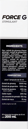 Force G Stimulant draagt bij aan het evenwicht van het lichaam (ginseng), ondersteunt de mentale alertheid en helpt mentale vermoeidheid te verminderen (cafeïne uit guarana).
