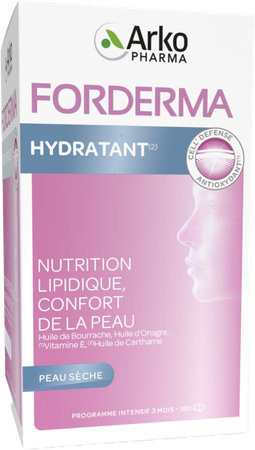 Forderma Hydraterend Caps 180 is een voedingssupplement, verkrijgbaar in uw buurtapotheek of online apotheek. Neem niet meer dan de aanbevolen dagelijkse dosis vermeld op de verpakking. Het vervangt geen gezonde levensstijl en gevarieerde en evenwichtige voeding. Vraag raad aan uw apotheker. Het product altijd buiten het bereik van kinderen houden.