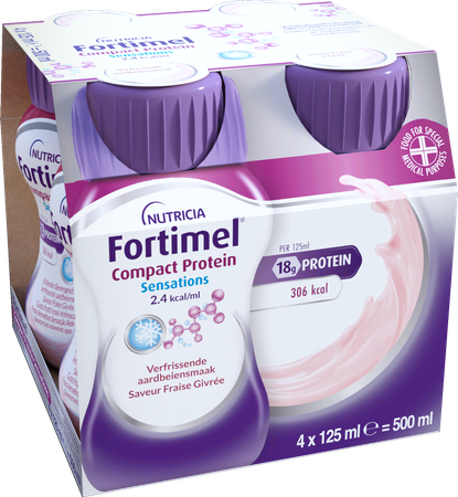Fortimel Compact Protein Sensation is een voeding voor medisch gebruik bij ziektegerelateerde ondervoeding of risico op ondervoeding, speciaal ontwikkeld voor mensen met een verhoogde behoefte aan eiwitten en energie zoals bijvoorbeeld kankerpatiënten en kwetsbare ouderen. Te gebruiken onder medisch toezicht.