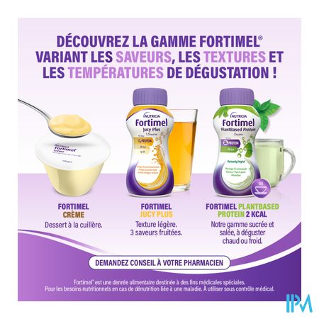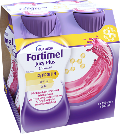 Voeding voor medisch gebruik. Dieetvoeding bij ziektegerelateerde ondervoeding. Fortimel Jucy Plus is een energierijke, vetvrije drinkvoeding. Glutenvrij en laag in lactose.