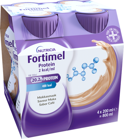 Fortimel® Protein 2kcal is een eiwitrijke, energierijke, kant-en-klare, volledige drinkvoeding.