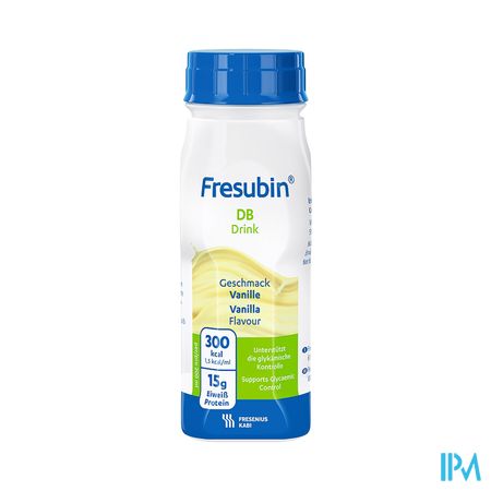 Fresubin DB DRINK is een volwaardige vervangvoeding, boordevol energie (1,5 kcal/ml) en hoogwaardige eiwitten, met voedingsvezels. Deze voeding voorziet het lichaam van de nodige energie, voor wanneer gewone voeding niet volstaat of extra voedingsstoffen nodig zijn. Deze formule is specifiek bedacht voor personen met een verstoorde bloedsuikerspiegel en bevat een hoog gehalte aan onverzadigde vetzuren. De voedingsvezels en trage koolhydraten in deze formule dragen bij aan een lage glycemische index. Het is een kant-en-klare voeding die geschikt is als enige voedingsbron.