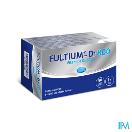 Fultium D3 800 Zachte Caps 90 is een voedingssupplement, verkrijgbaar in uw buurtapotheek of online apotheek. Neem niet meer dan de aanbevolen dagelijkse dosis vermeld op de verpakking. Het vervangt geen gezonde levensstijl en gevarieerde en evenwichtige voeding. Vraag raad aan uw apotheker. Het product altijd buiten het bereik van kinderen houden.