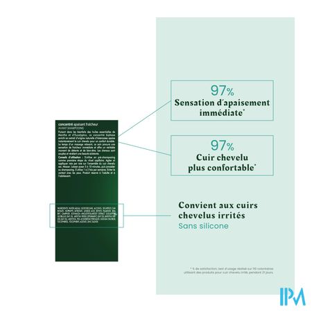 • onmiddellijk KALMEREND EFFECT : de hoofdhuid wordt onmiddellijk verlicht en krijgt een blijvend comfort. • een WELDADIGE VERFRISSING : geeft een aangenaam gevoel van frisheid dankzij de koude essentiële oliën. • een UITNODIGING VOOR een MASSAGE : HET moment van de behandeling zal de gelegenheid zijn VOOR een ontspannende zelfmassage.