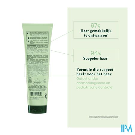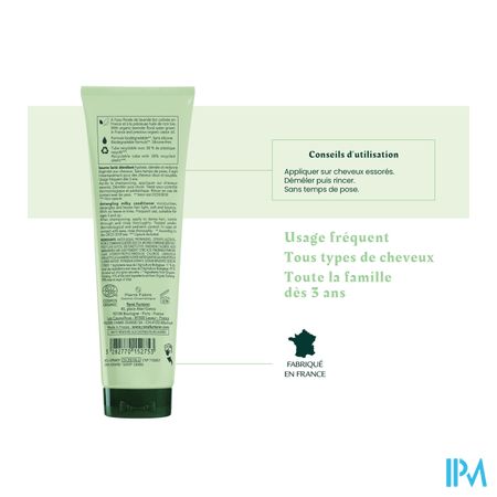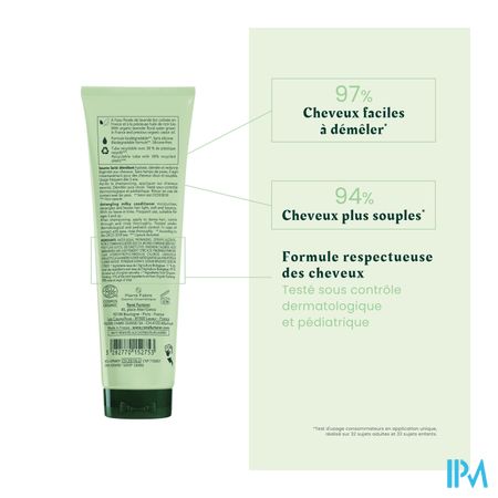 Deze gecertificeerde biologische ontwarrende verzorging voor alle haartypes zonder inwerktijd ontwart zonder de haarvezel te verzwaren. De deskundige formule met biologisch lavendelbloesemwater en biologische ricinusolie maakt het tot een perfecte dagelijkse verzorging voor het hele gezin, vanaf 3 jaar. Deze melkachtige en subtiel geparfumeerde verzorging smelt in het haar om het te hydrateren en onmiddellijk te ontwarren. Mooi, gezond, zacht en glanzend, het haar is licht en perfect ontward. Gecertificeerd biologisch. Formule van 99% natuurlijke oorsprong. Biologisch afbreekbaar*. Vegan**. Een minimum aan siliconen. *Volgens de OECD301B test
