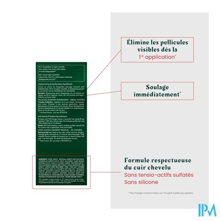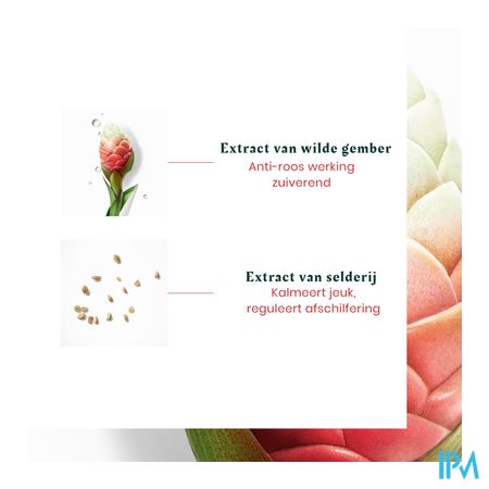 • ANTI-ROOS: verwijdert zichtbare vette roos vanaf het eerste gebruik. • ANTI-JEUK: verzacht onmiddellijk en langdurig de jeuk. • TALGCONTROLE: reguleert de talgproductie dankzij het Curbicia-extract.