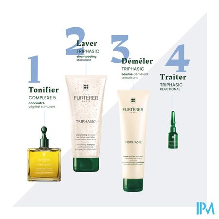 Rene Furterer Triphasic Reactional Treatment is voor plotseling of tijdelijk haarverlies. De complete behandeling om plotseling haarverlies te vertragen TRIPHASIC REACTIONAL reactiveert de haargroei en versterkt het haar, terwijl het natuurlijke evenwicht van de hoofdhuid behouden blijft.