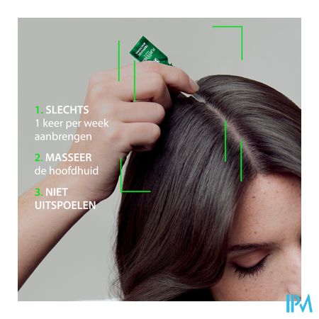 Gebruiksfrequentie 1 keer per week - Aanbevolen behandelingsduur 3 maanden Fase 1 Breng na het wassen de volledige inhoud van een ampul scheidingsgewijs aan op de schone, vochtige hoofdhuid. Fase 2 Masseer de hoofdhuid om het product te laten intrekken. Niet uitspoelen.