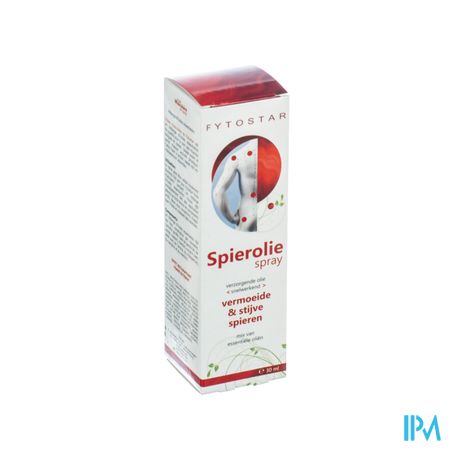 Fytostar Spierolie Spray 30ml is een voedingssupplement, verkrijgbaar in uw buurtapotheek of online apotheek. Neem niet meer dan de aanbevolen dagelijkse dosis vermeld op de verpakking. Het vervangt geen gezonde levensstijl en gevarieerde en evenwichtige voeding. Vraag raad aan uw apotheker. Het product altijd buiten het bereik van kinderen houden.