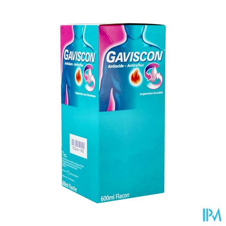 Welke stoffen zitten er in Gaviscon Antizuur - Antireflux? De werkzame stoffen in elke 10 ml zijn 500 mg natriumalginaat, 213 mg natriumbicarbonaat en 325 mg calciumcarbonaat. De andere stoffen in dit middel zijn carbomeer, methylparahydroxybenzoaat (E218), propylparahydroxybenzoaat (E216), natriumsacharine, pepermuntsmaakstof, natriumhydroxide en water. Dit middel bevat geen suiker en gluten.