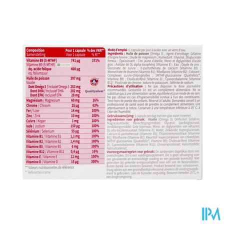 Met één capsule per dag levert Gestarelle G + ook vele andere essentiële elementen, zoals vetzuren (gezuiverde en gestabiliseerde Omega 3 uit visolie), jodium, ijzer en vitamines.