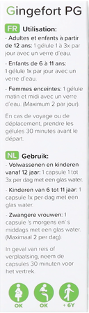 Gingefort PG is aangewezen bij stevige maaltijden, tijdens de zwangerschap en op reis. Gingefort PG is geschikt voor volwassenen, kinderen vanaf 6 jaar en zwangere vrouwen vanaf het begin van de zwangerschap.