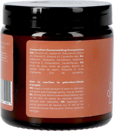 Breng een kleine hoeveelheid balsem aan op de neus en poten en masseer zachtjes. Gebruik naar behoefte.