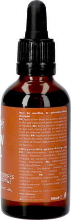 Breng een paar druppels aan op een watje, breng aan op de poten van de hond en masseer zachtjes in. Gebruik naar behoefte.
