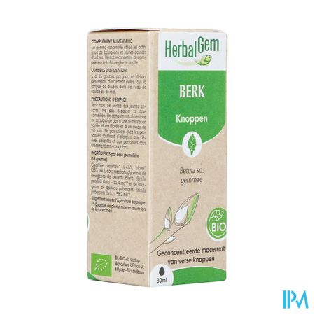 Herbalgem Berk Bio Mengsel 30ml is een voedingssupplement, verkrijgbaar in uw buurtapotheek of online apotheek. Neem niet meer dan de aanbevolen dagelijkse dosis vermeld op de verpakking. Het vervangt geen gezonde levensstijl en gevarieerde en evenwichtige voeding. Vraag raad aan uw apotheker. Het product altijd buiten het bereik van kinderen houden.