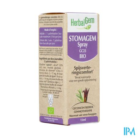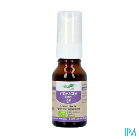 Herbalgem Stomagem Spray Bio 15ml is een voedingssupplement, verkrijgbaar in uw buurtapotheek of online apotheek. Neem niet meer dan de aanbevolen dagelijkse dosis vermeld op de verpakking. Het vervangt geen gezonde levensstijl en gevarieerde en evenwichtige voeding. Vraag raad aan uw apotheker. Het product altijd buiten het bereik van kinderen houden.
