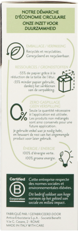 De Herbatint verpakking is gemaakt van volledig recyclebaar ongestreken papier met een oorsprongsbenaming. Herbatint is tegen dierproeven en is geschikt voor veganisten. De flesjes kunnen hersloten worden en de ongemengde inhoud kan opnieuw worden gebruikt, zodat u alleen gebruikt wat u nodig hebt en de rest bewaart voor een volgende toepassing. Dit om nutteloze verspillingen te vermijden.