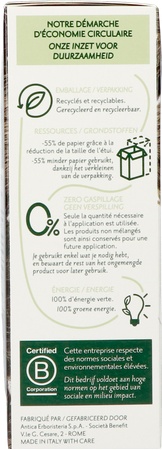 - Zonder Ammoniak - Resorcinol - Parabenen - Alcohol - Parfum - Gluten