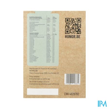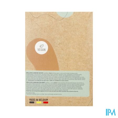 Havermeel (bevat gluten), erwten proteïne isolaat, kokosbloemsuiker, lijnzaadoliepoeder, natuurlijk aroma, tripotassium citraat, calcium carbonaat, magnesium citraat, kaneelpoeder (Cinnamomum cassia), verdikkingsmiddel: xanthaan gom, gemberpoeder (Zingiber officinale), natrium chloride, cayennepeperpoeder (Capsicum annuum), kardemonpoeder (Elettaria cardamomum), magnesium oxide, zuurteregelaar: monopotassium fosfaat, zoetstof: steviol glycosides van stevia, vitamine/mineralenblend.