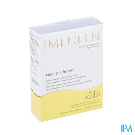 IMEDEEN Time Perfection™ huidverzorgingstabletten helpen de zichtbare tekenen van het ouder worden te bestrijden. Fijne lijntjes en rimpels worden na uw veertigste steeds zichtbaarder. IMEDEEN Time Perfection™ huidverzorgingstabletten werken in de diepere huidlaag, waar crèmes niet kunnen komen. Met het exclusieve Marine Complex™, LycoPhence GS Forte™, vitamine C en zink.