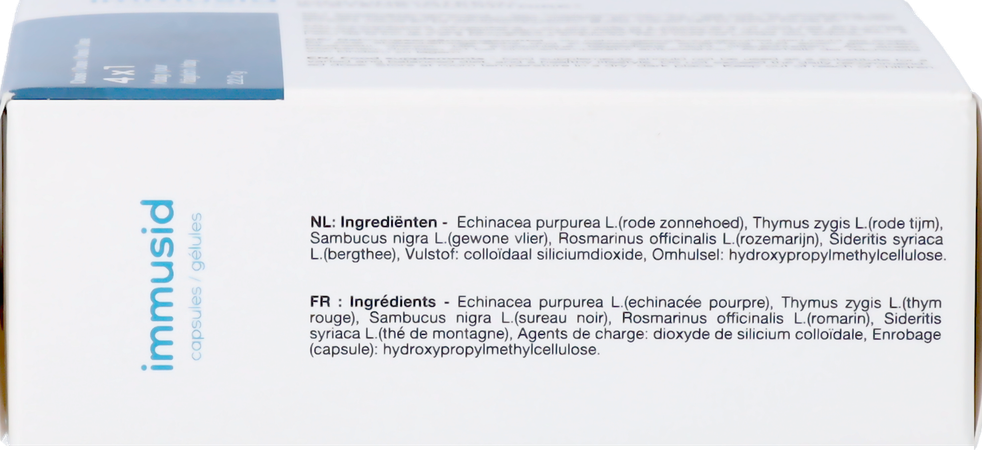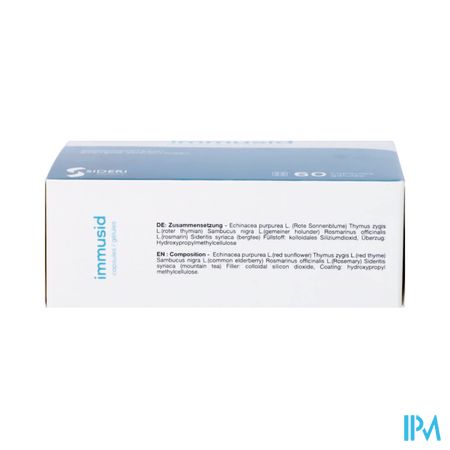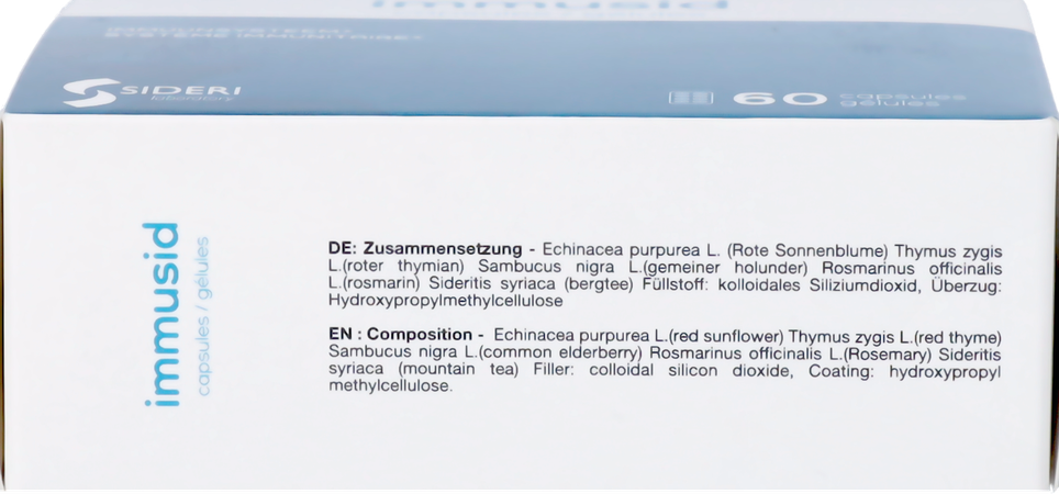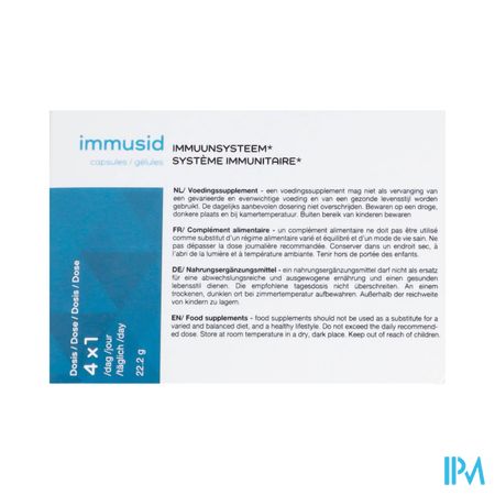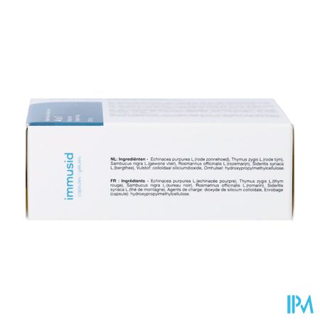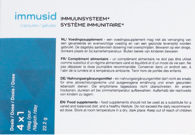 Immusid Caps 60 is een voedingssupplement, verkrijgbaar in uw buurtapotheek of online apotheek. Neem niet meer dan de aanbevolen dagelijkse dosis vermeld op de verpakking. Het vervangt geen gezonde levensstijl en gevarieerde en evenwichtige voeding. Vraag raad aan uw apotheker. Het product altijd buiten het bereik van kinderen houden.