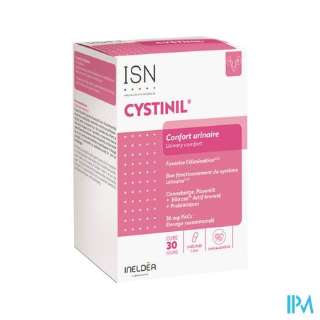 Voedingssupplement op basis van extracten van Cranberry getitreerd in Proanthocyanidinen (PAC's), Hibiscus getitreerd in Fenolverbindingen, Paardenbloem, Lactobacillus rhamnosus en Kalium.