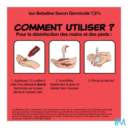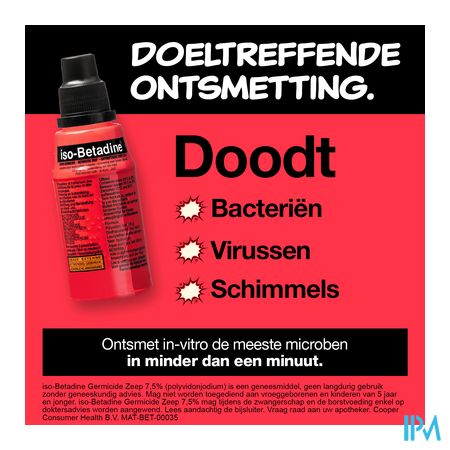 - iso-Betadine Germicide Zeep nooit inslikken.